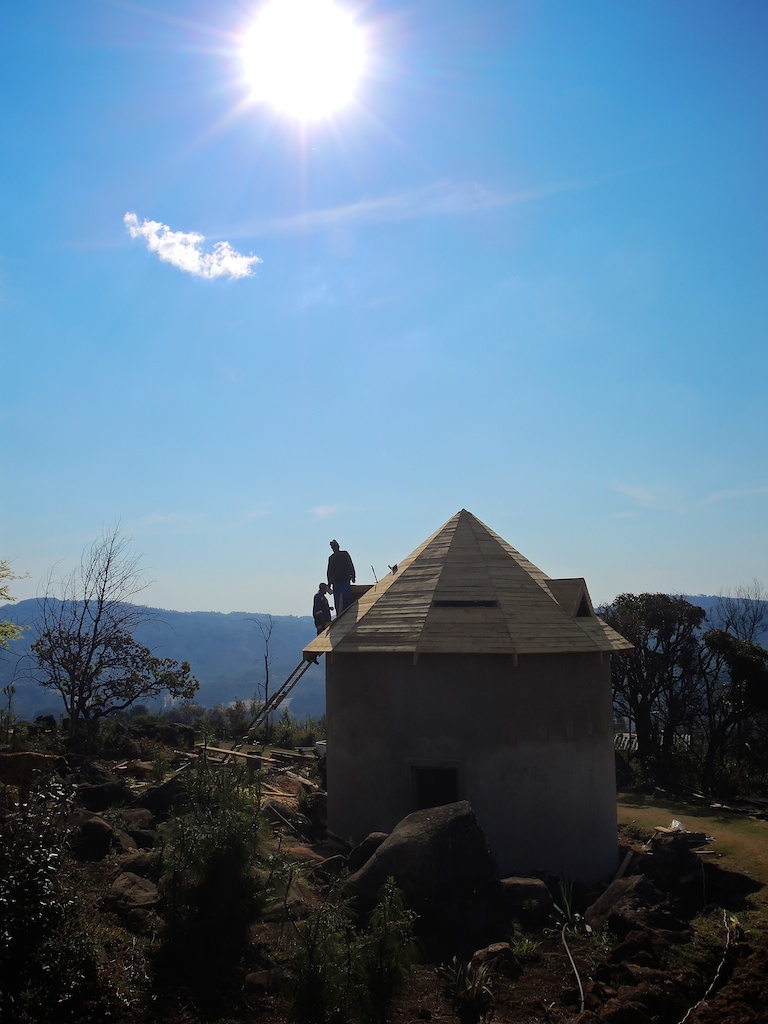 … the crew takes a moment to relax on the newly built launch tower during the rigorous training and selection procedures