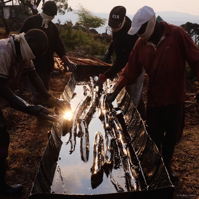 So we’ve started dipping the giant pile of poles, one by one, two by two! At this stage we reckon on needing 450 poles and droppers at 10m spacing.