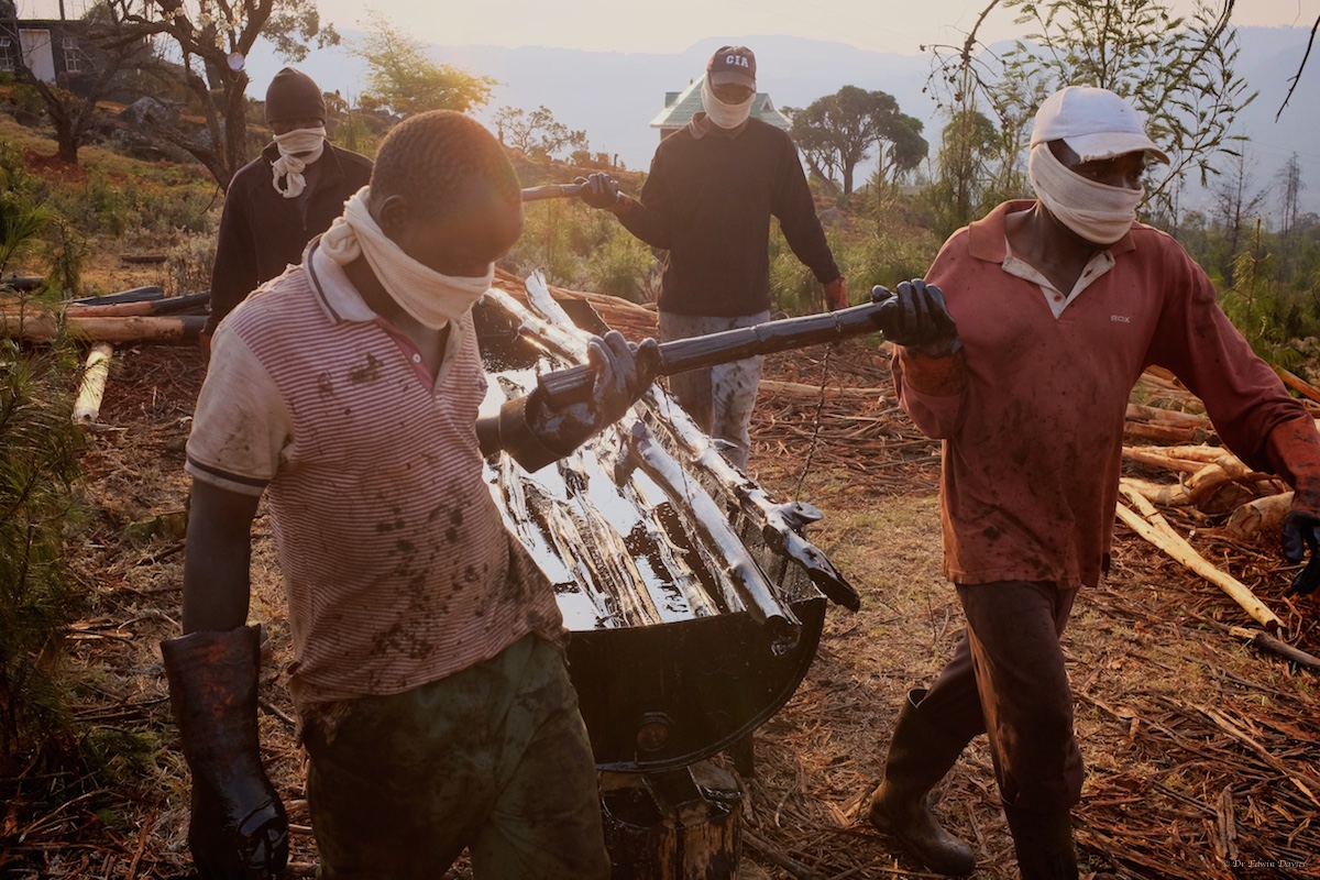 Part way through we also dipped the rolls of veld fence (Bonox fence) in bitumen to provide some protection to the bottom of the fence in contact (or buried) in the ground. No pictures of the operation due to yours truly being the ‘senior driver’ but we used the forklift attachment on the front loader to pick up each roll held on end. Then dipped it in the butumin and placed it on the stack shown below. Each roll is 100m and weighs approx. 90 kg.