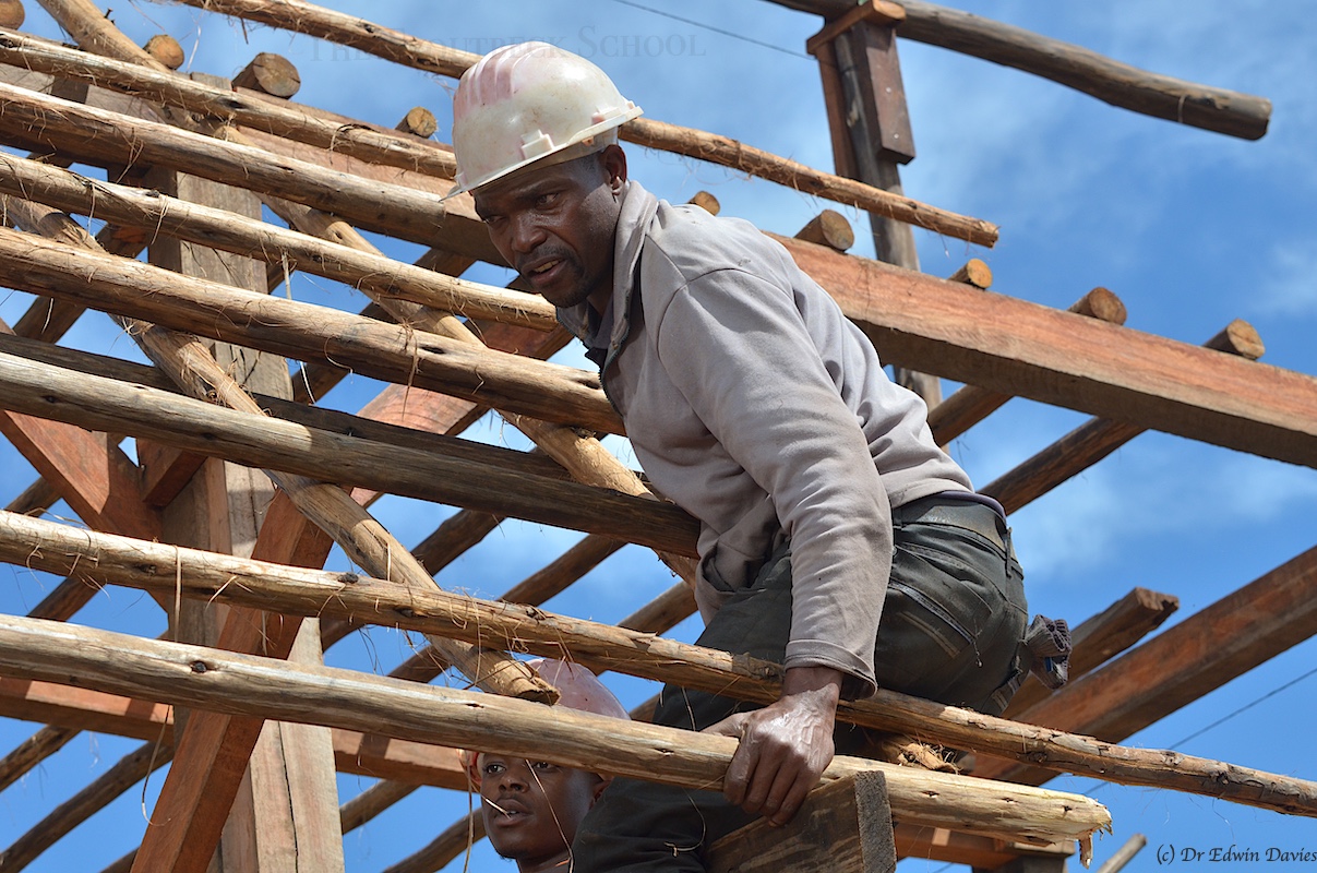 Post and beam construction – adding finishing pole to ends of rafters – 6 Jan 21 – as thatchers start preparing January 9, 2021 by easternhighlander 0 contains product placement Thatchers preparing mats of thatching grass to lay over mbariro Share this: Click to share on X (Opens in new window) X Click to share on Facebook (Opens in new window) Facebook Like Loading... Related