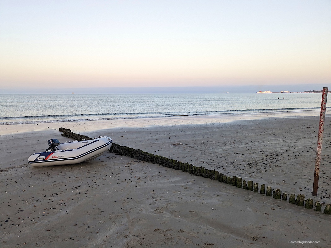 We anchored off Rosslare by the three public mooring buoys. Just look at the ‘warm’ setting sun, it could be the riviera, really😉