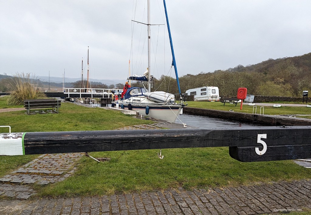 Storm Glider Goes North 7: The Crinan Canal (tied up in canal) and we transit to Crinan