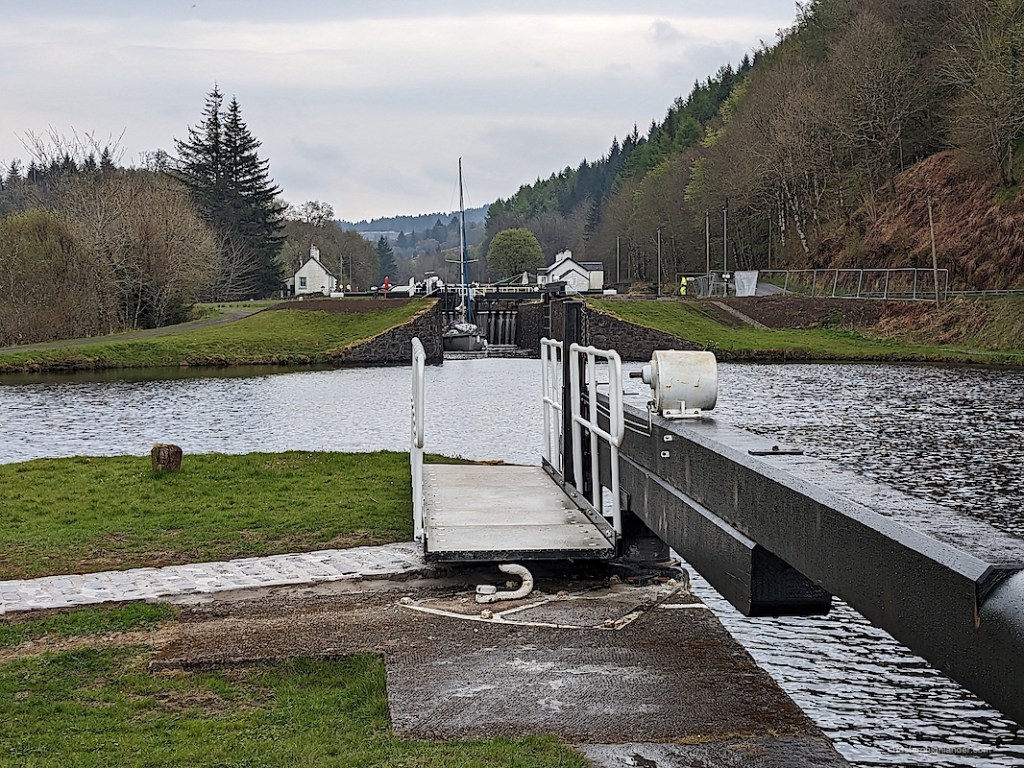 It all began, for us, as we started through the sea lock, the swing bridge for the road and the next lock up. Apparently we would have to wait as there was a tree in the canal. We moored up above the second lock and eventually, after various communications, started walking along the canal in the direction of the incident – Auchindarrach