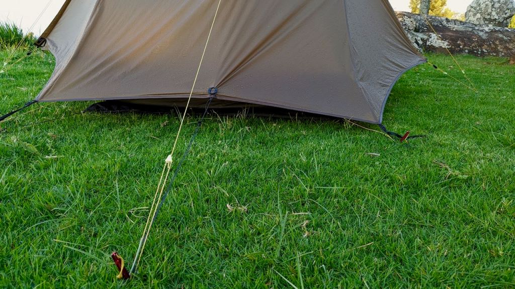 Number one, and a no-brainer for me, is a 4 metre guy from the top of the tent at each end of the ridge-line. This provides ‘essential Lanshan camping benefits’ as follows: