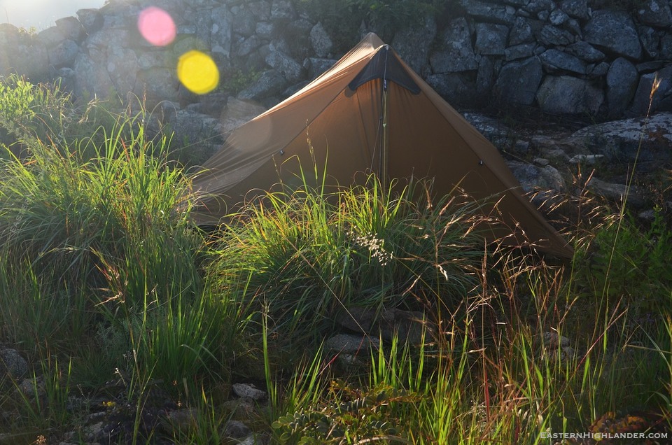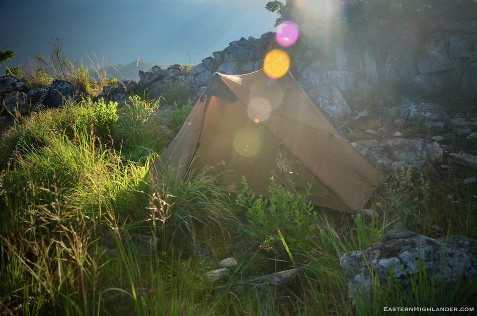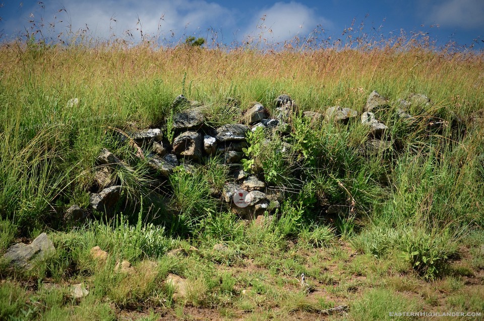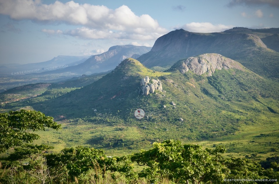 I eked out a pitch here as there was some wind shelter behind this ancient Shona wall, and the rain was approaching from Nyangani. There are a great many Shona remains on top and a round Kuwira on the way up.