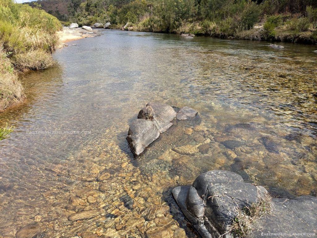The walk in was my now usual – and not so scenic in winter – trip from Troutbeck through the woods and over the hill, dropping down to the extended Dazi area, across the Menzi and then shoes-off-crocs-on across the Gairezi at John’s Shack.