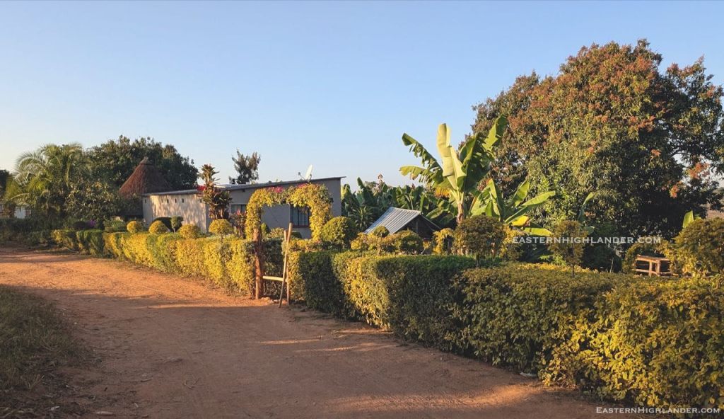 At 4:30 am I was having my porridge, packing up and taking pics. The real sunrise was the other side of the Mozambique mountains so nothing like the morning before. Around 6 am I was taken to another house to meet the rest of the family, then headed on down – see pic of the topiary on the way. Was going too fast for proper picture stops as I couldn’t miss this early bus. Ended up eating 7 km in record time.