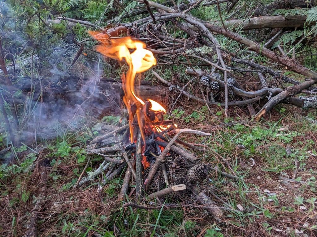 This next patch was my resting place later on; with more showers imminent, the tent went up in a hurry using improvised off-cut tent pegs for grip.