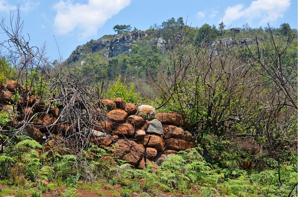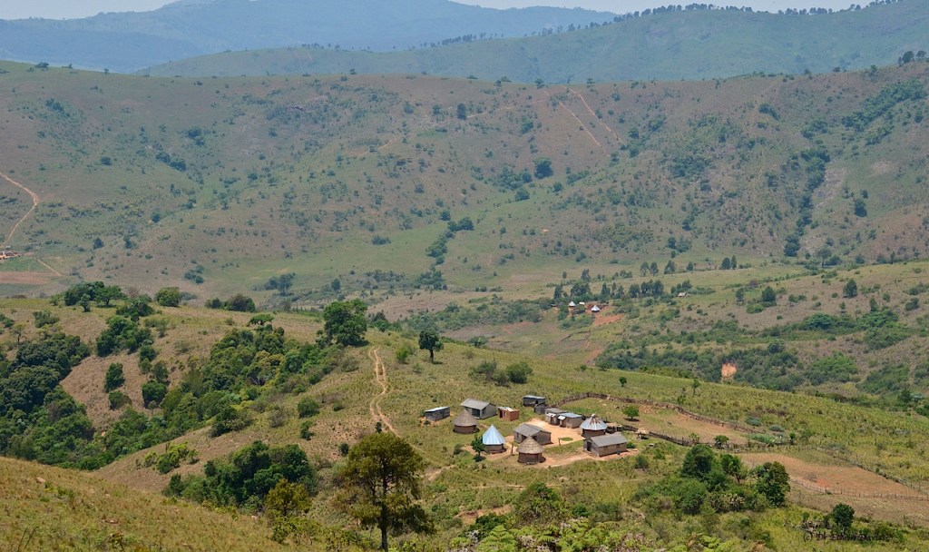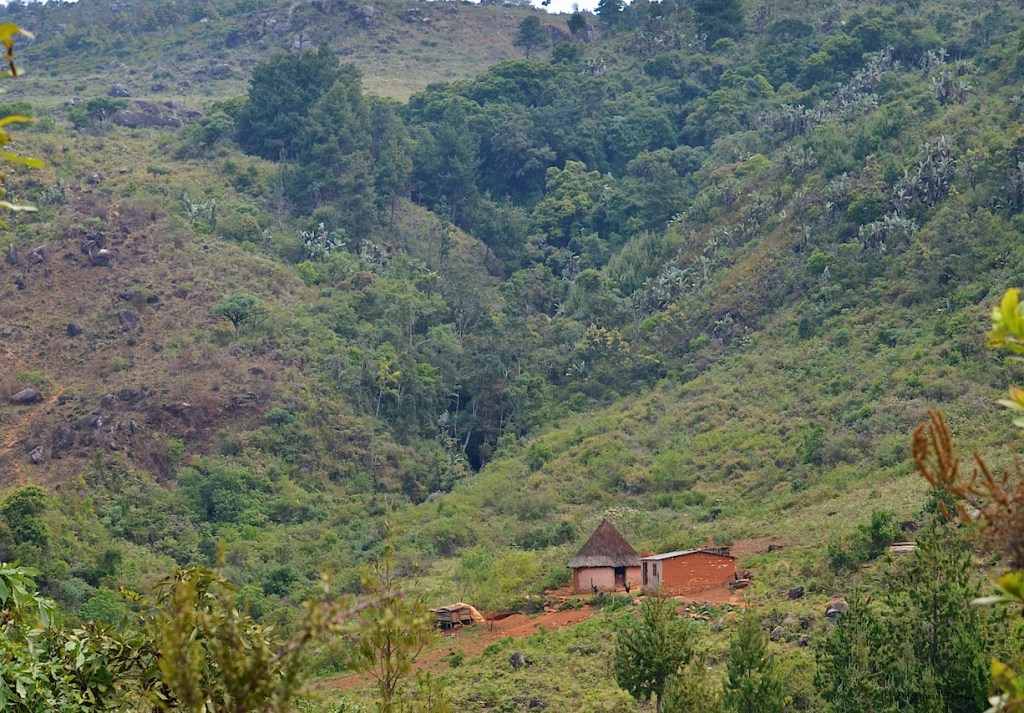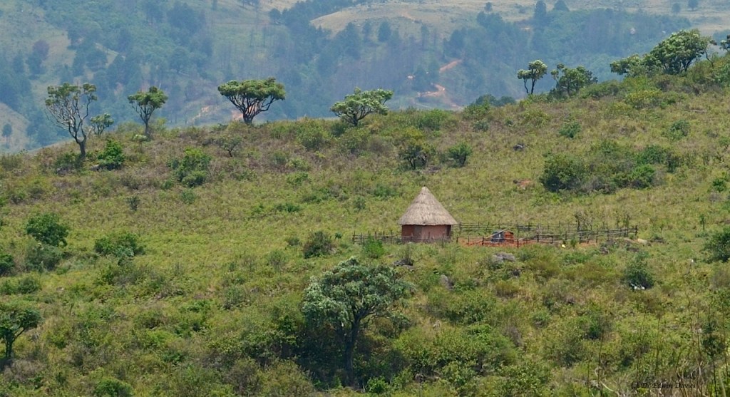 Near the bottom of the steepest slope ever walked with camera in-hand there is a house and rondavel at 1757 m with highly reflective ‘zenga’ (=zinc) / roofing.