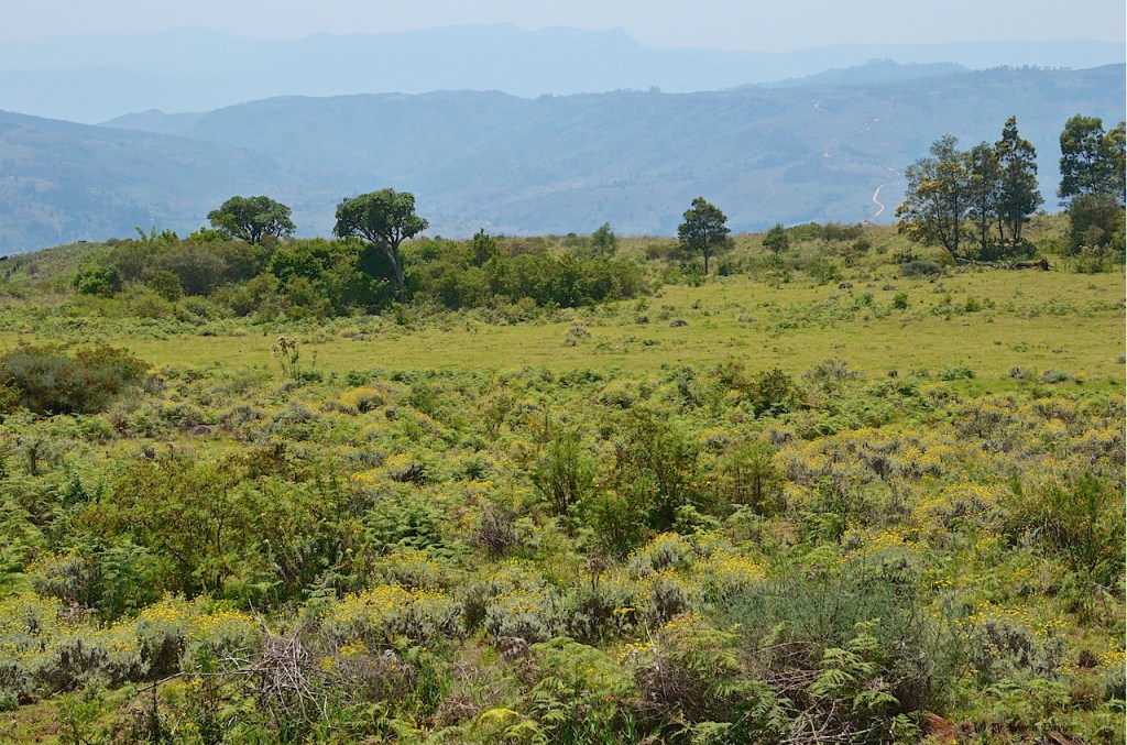 Coming out of the woods and heading north east you are now walking to the ‘other side’ of the watershed in a whole new geography; the hint of a panorama across the Gairezi river valley reaching over to unknown peaks around Nyafaro steadily pulls you along.