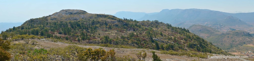 Pretty much plain sailing (up) now. Perfect views west, south and east – though you may stay on the west side as you can return later walking on the east side. You will see more Shona dry-stone work in and around the trig point and below to the east on the rather massive plateau you can’t quite believe exists up here. This means you are walking east, over to look towards and down on Nyanga. It also means you can see a whole new adventure and a whole new valley of trees, some indigenous and some pines (now logged), to the north. I found a way down and through to the east curious about the logging (how are they going to get the planks out from the top of a domed hill – manpower presumably?). I was also searching for evidence of a way down directly to Nyamhuka 2 whilst at the some time contemplating a giant circular walk back to the car and wondering if it would be quicker than retracing my steps. As it became steeper where the stream narrowed and disappeared, discretion overcame valour and I made the decision to retrace. Once back at the main plateau I contoured along the eastern side saving a bit of re-ascent and getting in some more pictures of the Nyanga to Juliasdale panorama. Soon after the first lower plateau on the way down I found those paths now heading downwards and northwards to my right. I took one of many going in the general direction of the car for a quicker, easier trek back. This was a 5 hour trip with no picnic stops but many photo breaks including an augur buzzard. If you went to the trig point and back you would knock off an hour anyway. For me the premier day out in Nyanga with the Bepe hill coming second.
