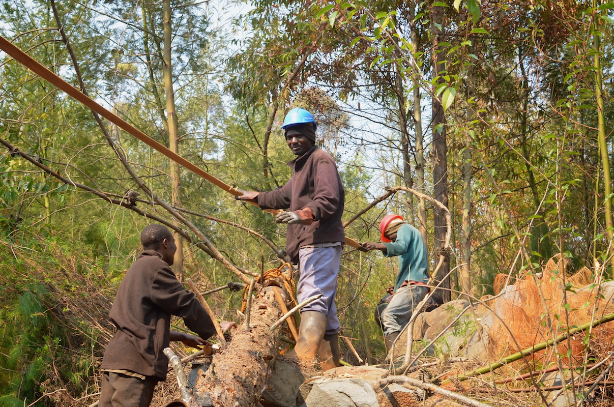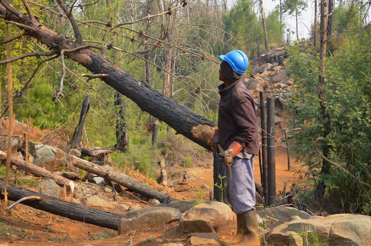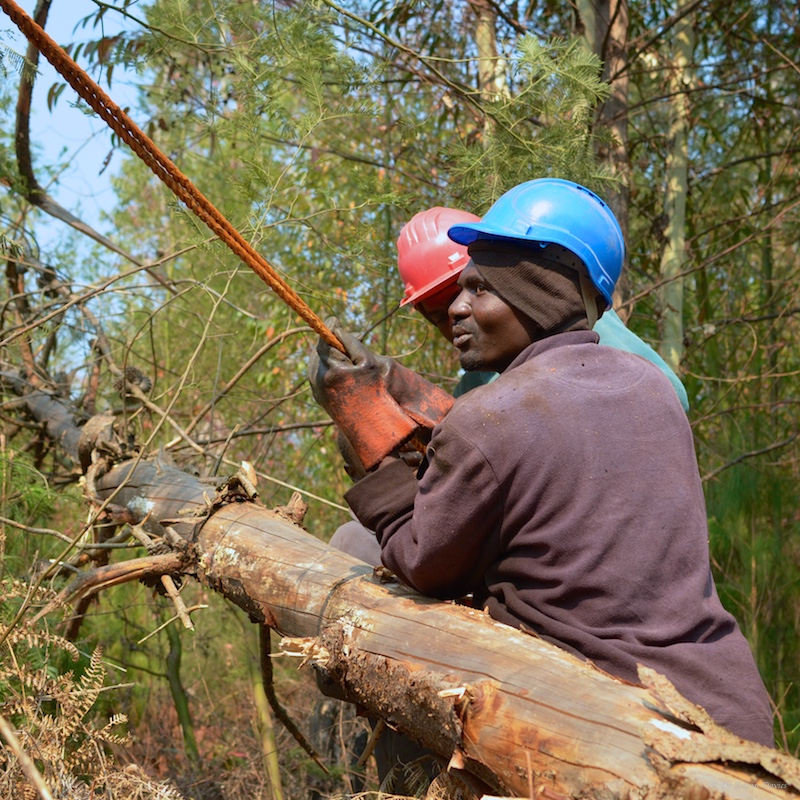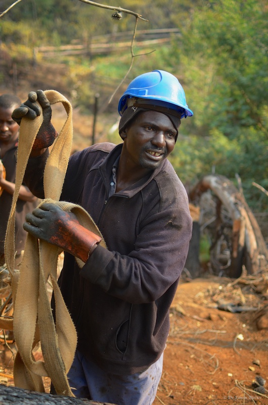 First: the electricity line up from Troutbeck enters Hornbydale running through the bottom of a small valley. Along the valley sides pine, wattle and gum trees have grown over the last 20 – 30 years. Now they tower over the electricity (ZESA) lines and we are carefully removing them on both sides. The direction of the prevailing wind is of course just right to blow weaker trees onto the line.